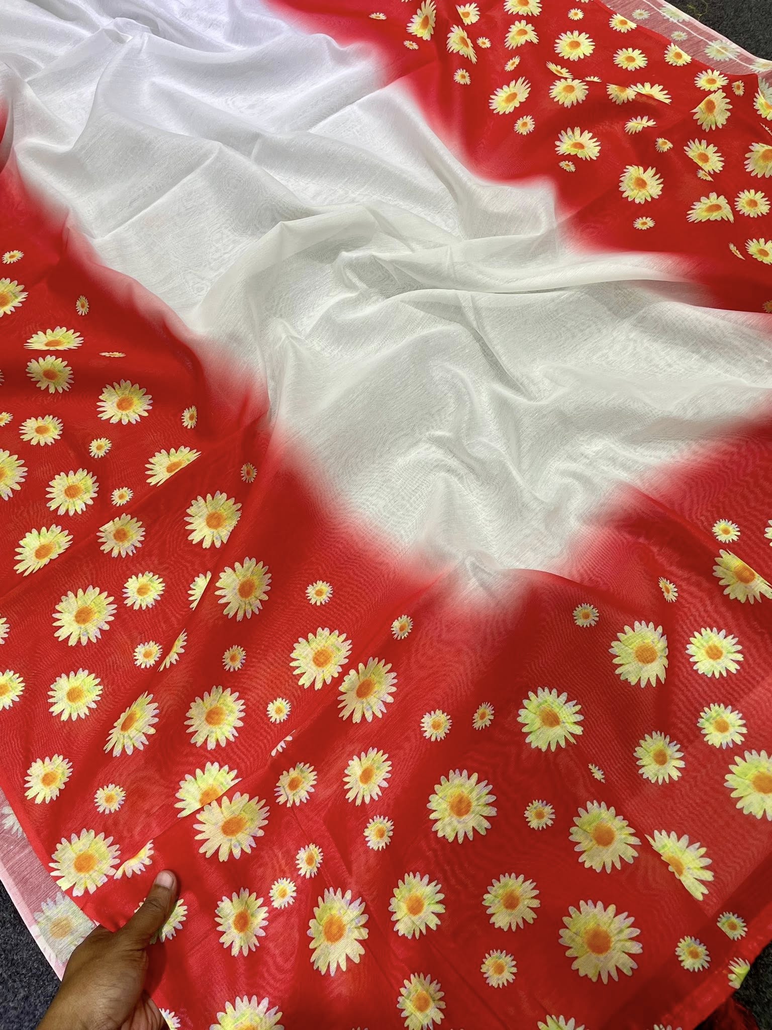 এই শাড়িটি একটি দৃষ্টিনন্দন সিল্ক শাড়ি, যেখানে সাদা পটভূমিতে হলুদ ফুলের ডিজাইন একসাথে মিশে একটি অনন্য প্রিমিয়াম লুক তৈরি করেছে। যেকোনো উৎসব, পার্টি, বিয়ে কিংবা বিশেষ অনুষ্ঠানে পরার জন্য এটি হবে একটি পারফেক্ট চয়েস।