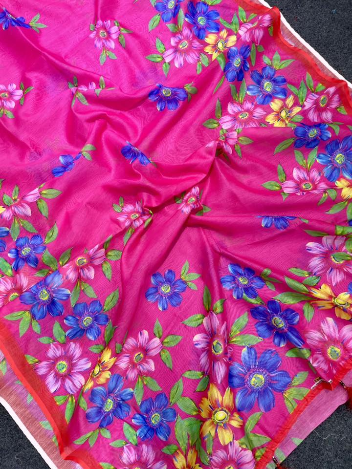এই শাড়িটি একটি দৃষ্টিনন্দন সিল্ক শাড়ি, যেখানে গোলাপি পটভূমিতে নানান রকম ফুলের ডিজাইন একসাথে মিশে একটি অনন্য প্রিমিয়াম লুক তৈরি করেছে। যেকোনো উৎসব, পার্টি, বিয়ে কিংবা বিশেষ অনুষ্ঠানে পরার জন্য এটি হবে একটি পারফেক্ট চয়েস।